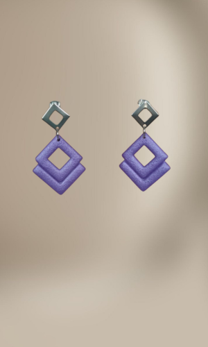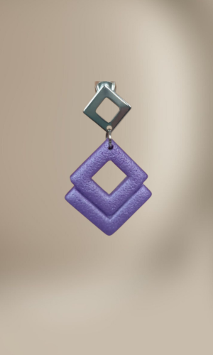 Adauga o nota de originalitate tinutei tale cu acesti cercei geometrici ,confectionati din elemente rombice de culoare mov metalizat