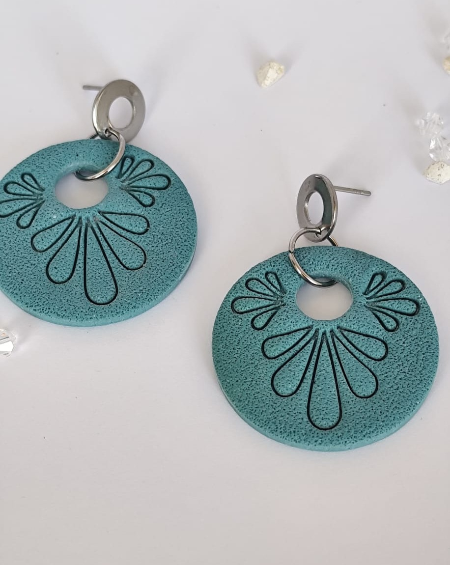 lutul polimeric si accesoriile metalice din otel inoxidabil ( materiale non alergenice ) sunt parte din aceasta minunata pereche de cercei lucrata manual .
