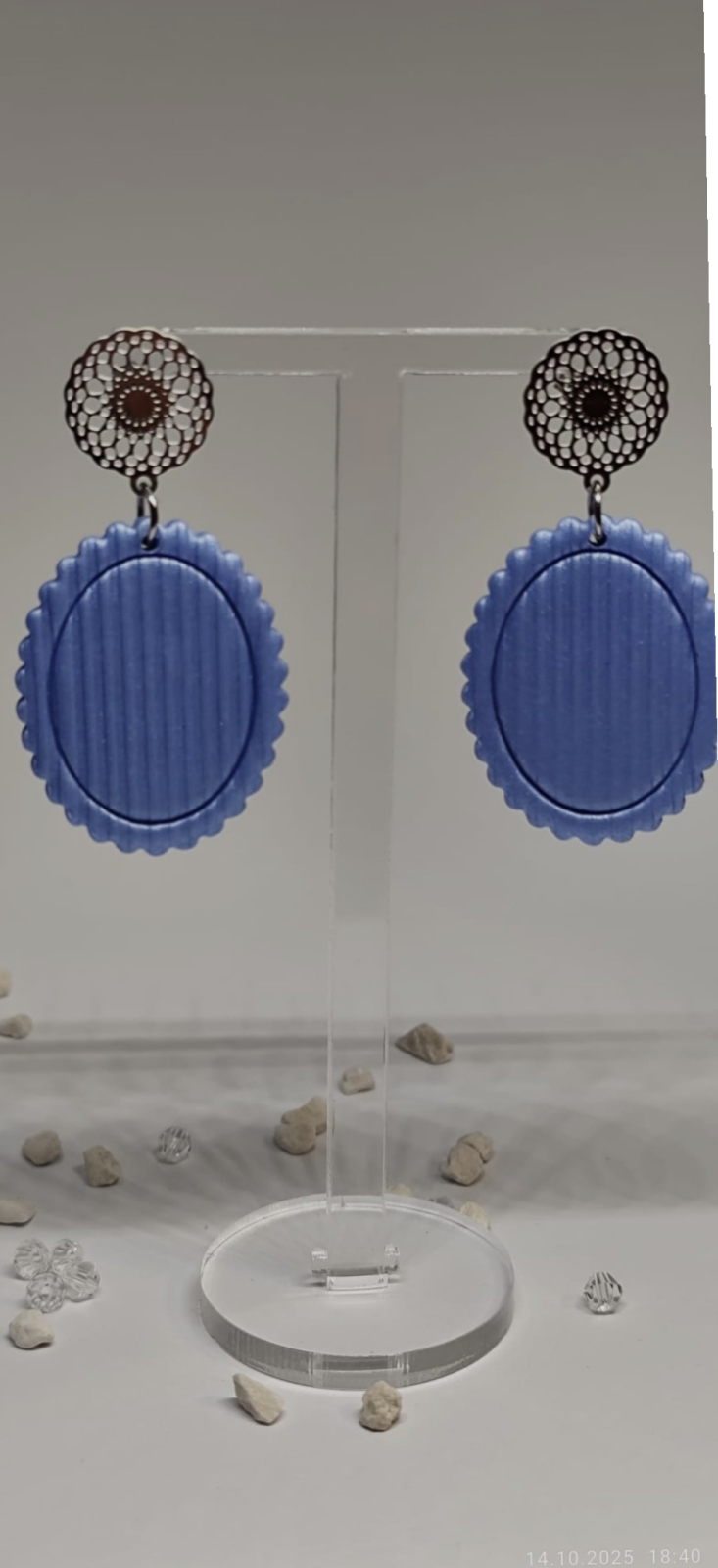cercei eleganti lucrati manual de un albastru deschis sidefat .