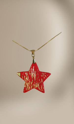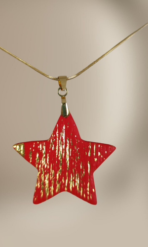 Pandantivul său in forma de stea din lut polimeric de 4.5 cm este texturat cu grijă și accesorizat cu foiță metalică. conferindu-i un aspect rafinat și sofisticat.